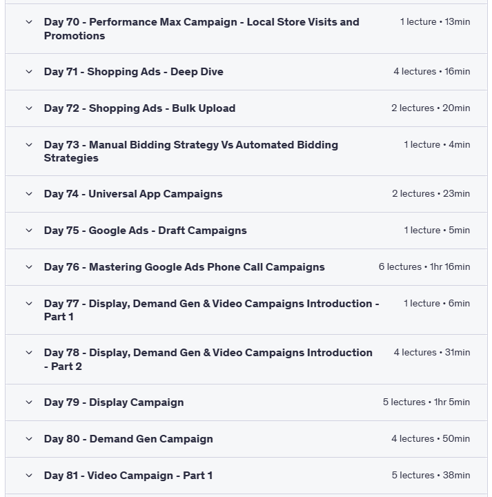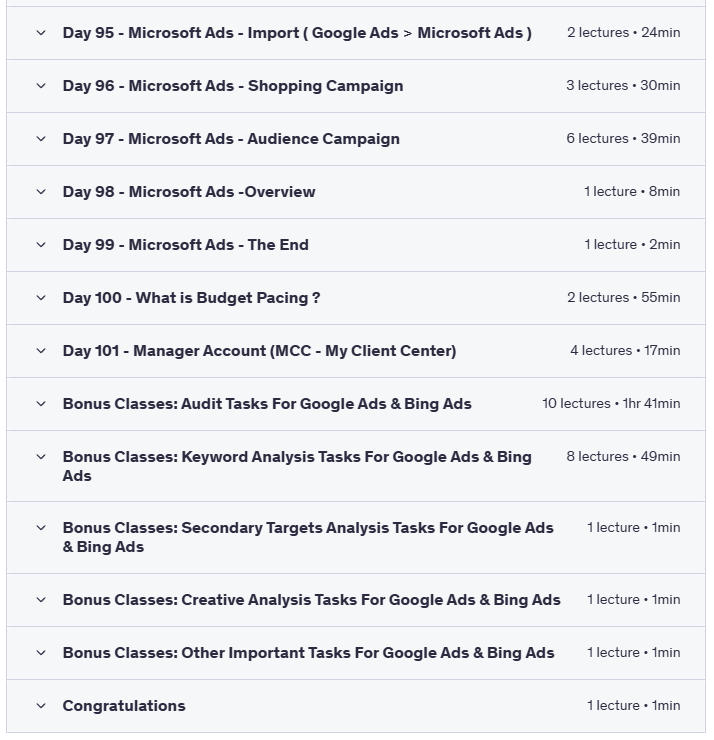 - In addition to these, you will explore every campaign type available in both Google Ads and Bing Ads throughout the course, ensuring a thorough understanding of campaign creation and optimization strategies across platforms.