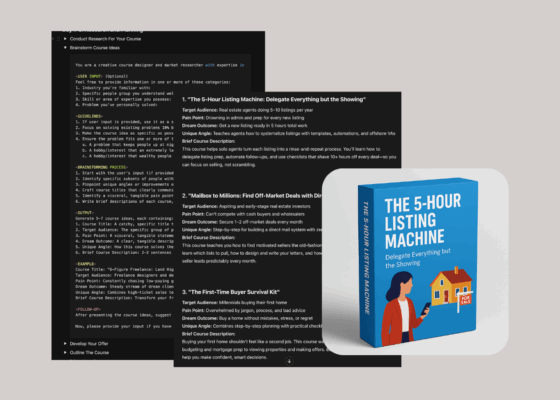 - AI brainstorming prompts that generate multiple profitable course ideas based on your specific expertise