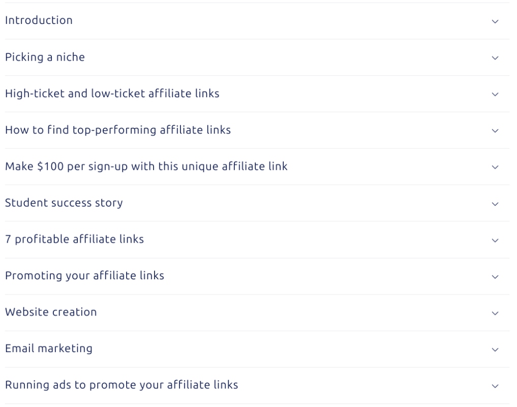 My course is just like you sitting next to me while I show you the strategy you can follow to go from $0 to $15k/month! I share with you unique affiliate links, which allow you to make $50-$100 in commission per sign-up. These affiliate links can not be found anywhere online, they’re only available to students who join this course!