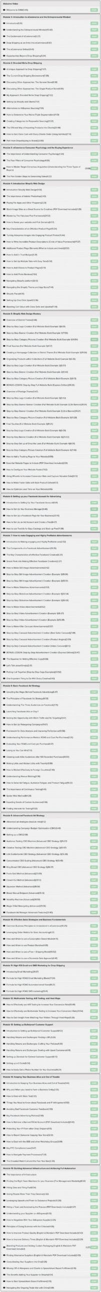 You will learn STEP-BY-STEP how to replicate my success in the MOST COMPREHENSIVE curriculum available on the market. This is the WORLD’S FIRST A-Z eCommerce master class.