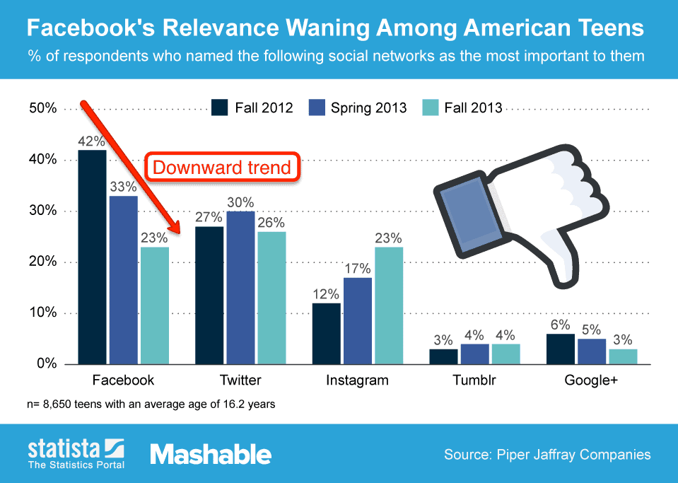 So it’s fair to say that unless Facebook can come up with another strategy to get teens to start using their platform, then it will be dead in 7 years.