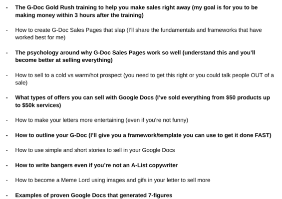 Since 2021… I’ve been using simple G-Docs to sell and deliver pretty much everything. From $50 widgets and products… to $500-$3k courses… to $3k-$18k group coaching and consulting… to $20k-$30k masterminds… up to a $50k service… and everything in between. I use them to sell my own offers. I use them to deliver my content. I write them for clients and consult on how to deploy them.